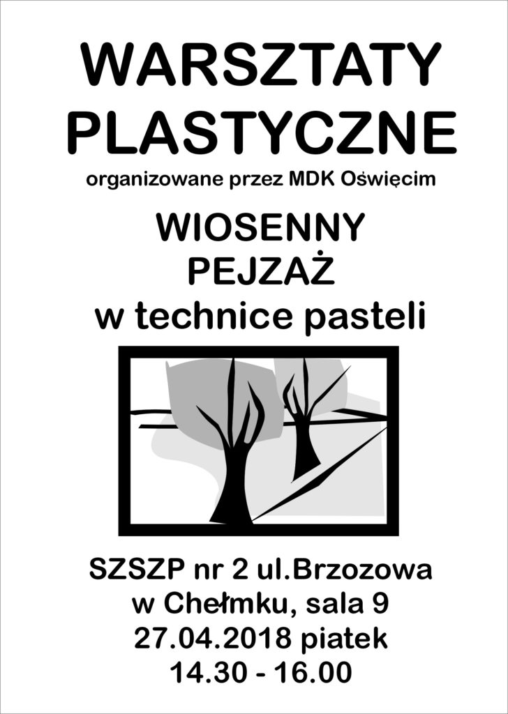 Warsztaty plastyczne w Chełmku 27.04.2018 25 kwietnia, 2018 Category: Aktualności Możliwość komentowania Warsztaty plastyczne w Chełmku 27.04.2018 została wyłączona Post Views: 261