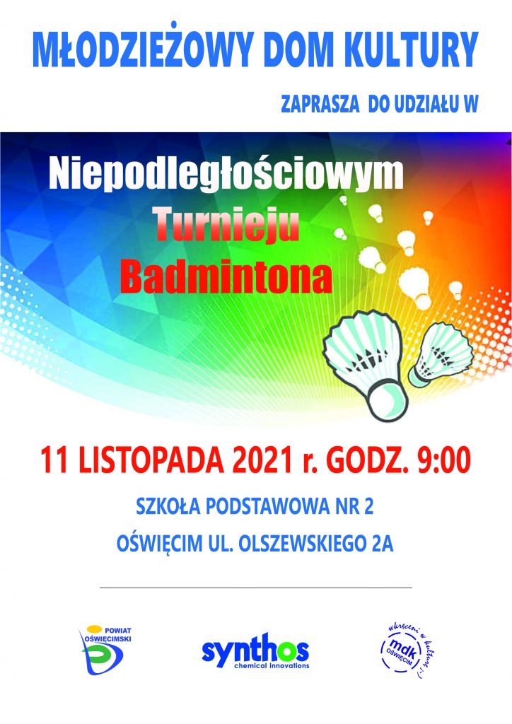 Młodzieżowy Dom Kultury zaprasza dzieci i  młodzież do udziału w Niepodległościowym Turnieju Badmintona