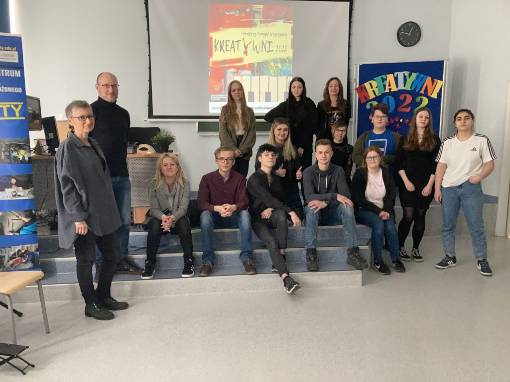 17.03.2022 w Powiatowym Centrum Kształcenia Technicznego i Branżowego odbyły się przesłuchania w kolejnej edycji Powiatowego Przeglądu Artystycznego “KREATYWNI 22”. Komisja konkursowa z Młodzieżowego Domu Kultury miała okazję ocenić występy oraz prace uczniów w kilku kategoriach m.in. śpiew, gra na gitarze, taniec, etiudę aktorską, poezję czy film.