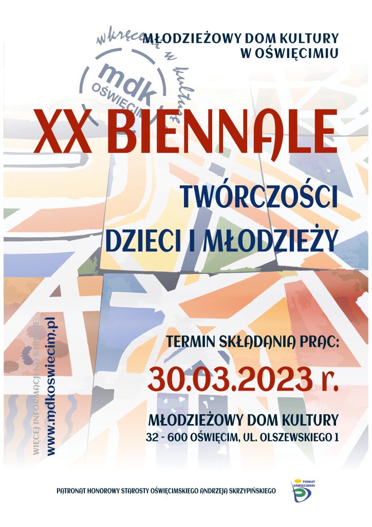 Zapraszamy Was do udziału w dwudziestej edycji ogólnopolskiego Biennale Twórczości Plastycznej Dzieci i Młodzieży – najstarszej cyklicznej imprezie plastycznej dzieci i młodzieży, organizowanej od 1984 roku przez Młodzieżowy Dom Kultury w Oświęcimiu.