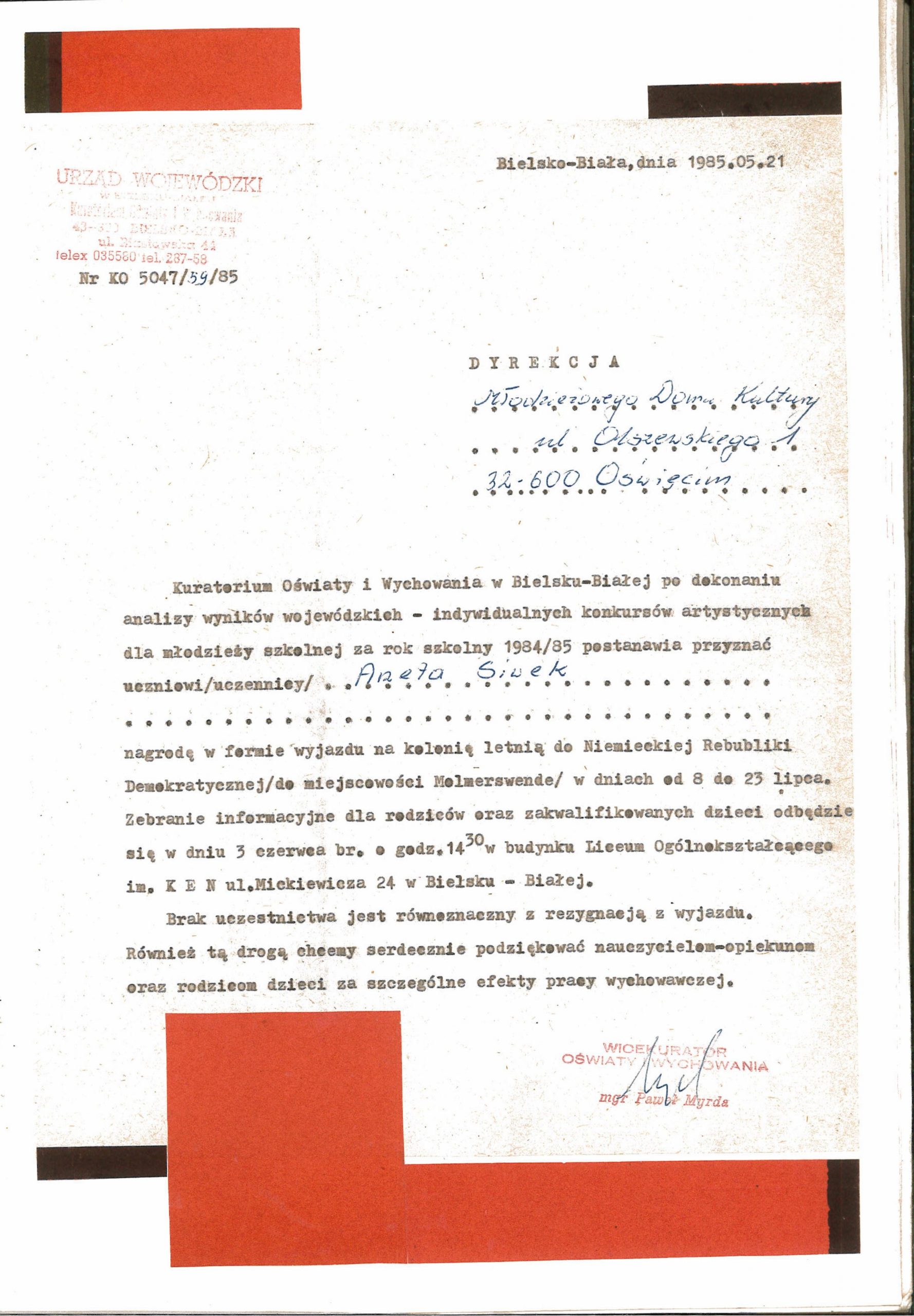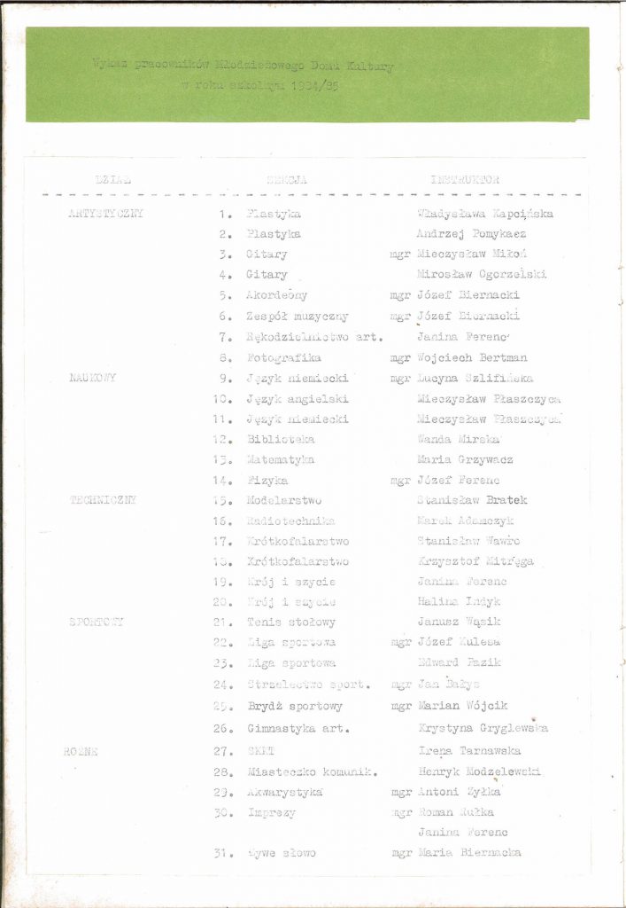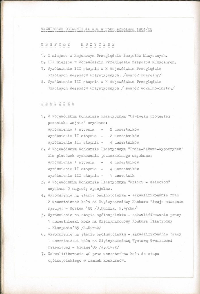 HISTORIA MDK W KRONIKACH ZAKLĘTA – cz. 10 (rok szkolny 1984/1985) 12 czerwca, 2025 Category: Aktualności, Historia MDK Możliwość komentowania HISTORIA MDK W KRONIKACH ZAKLĘTA – cz. 10 (rok szkolny 1984/1985) została wyłączona Post Views: 219