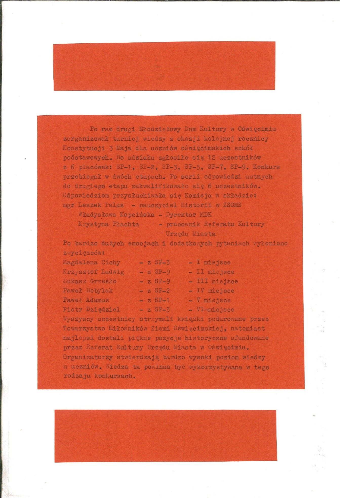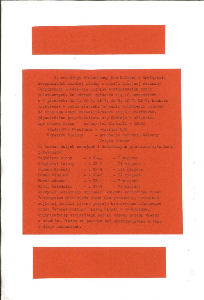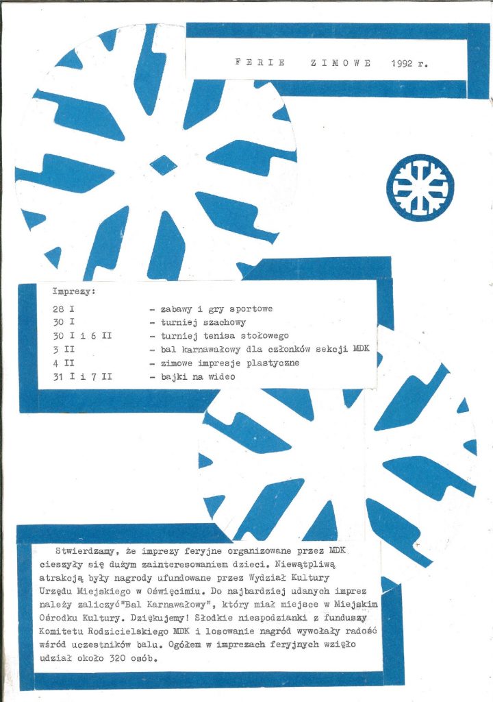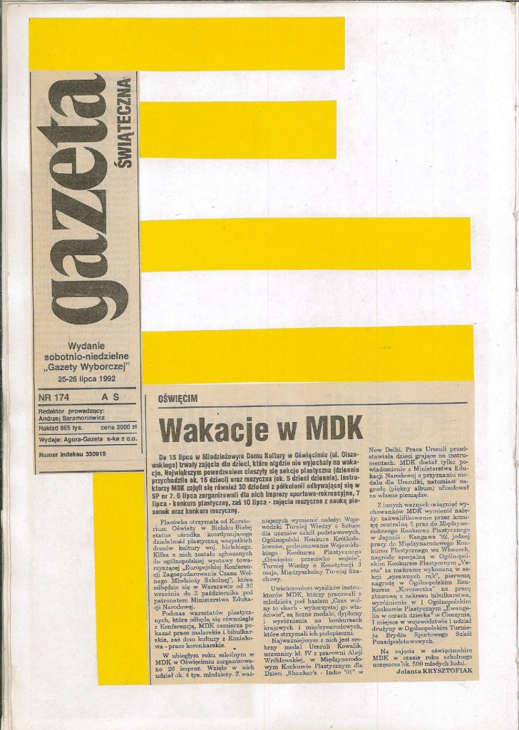 HISTORIA MDK W KRONIKACH ZAKLĘTA – cz. 17 (rok szkolny 1991/1992) 24 czerwca, 2025 Category: Aktualności, Historia MDK Możliwość komentowania HISTORIA MDK W KRONIKACH ZAKLĘTA – cz. 17 (rok szkolny 1991/1992) została wyłączona Post Views: 185