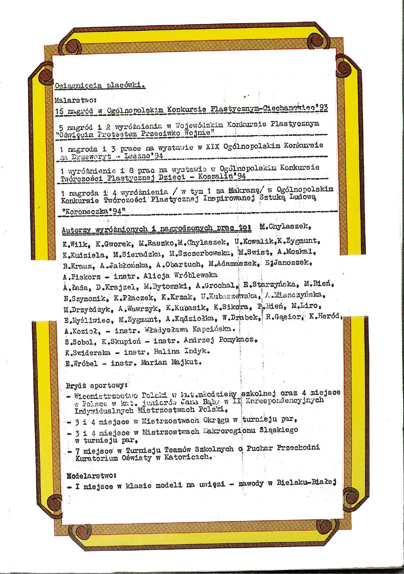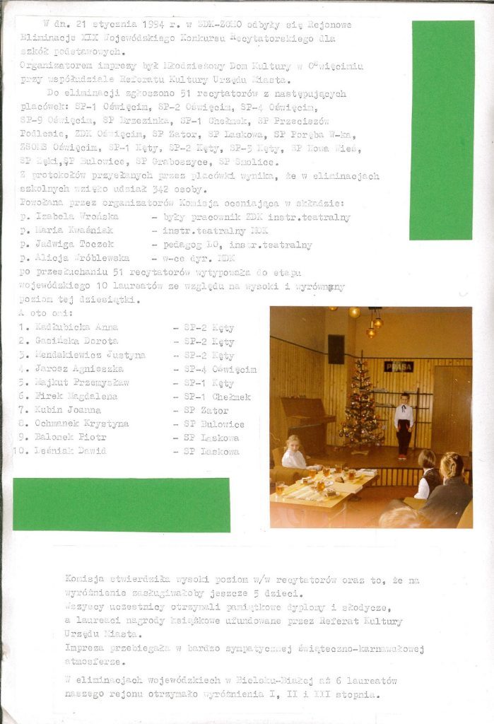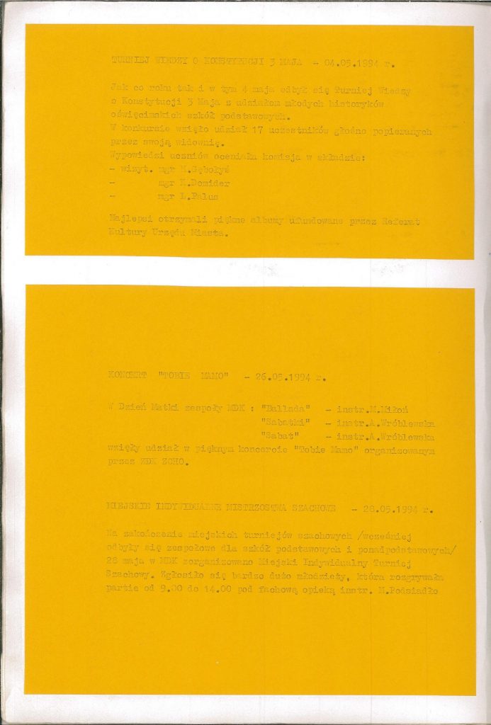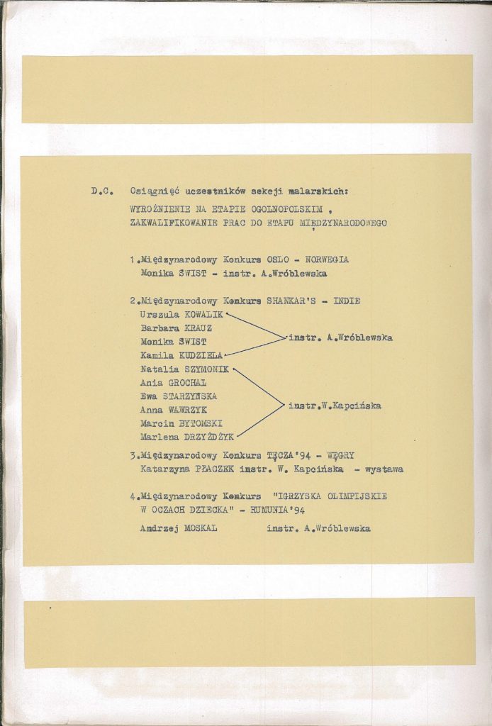 HISTORIA MDK W KRONIKACH ZAKLĘTA – cz. 19 (rok szkolny 1993/1994) 26 czerwca, 2025 Category: Aktualności, Historia MDK Możliwość komentowania HISTORIA MDK W KRONIKACH ZAKLĘTA – cz. 19 (rok szkolny 1993/1994) została wyłączona Post Views: 166