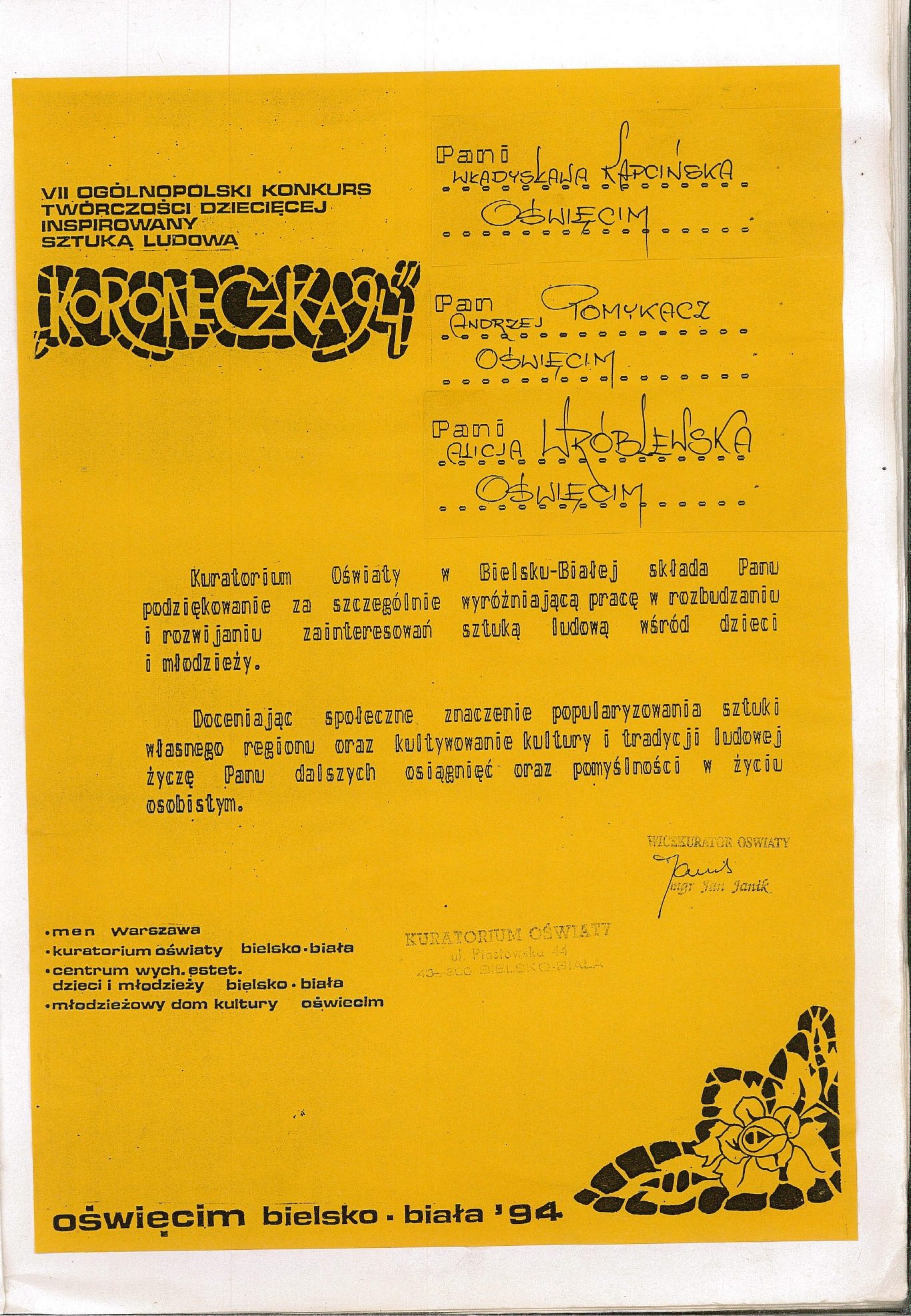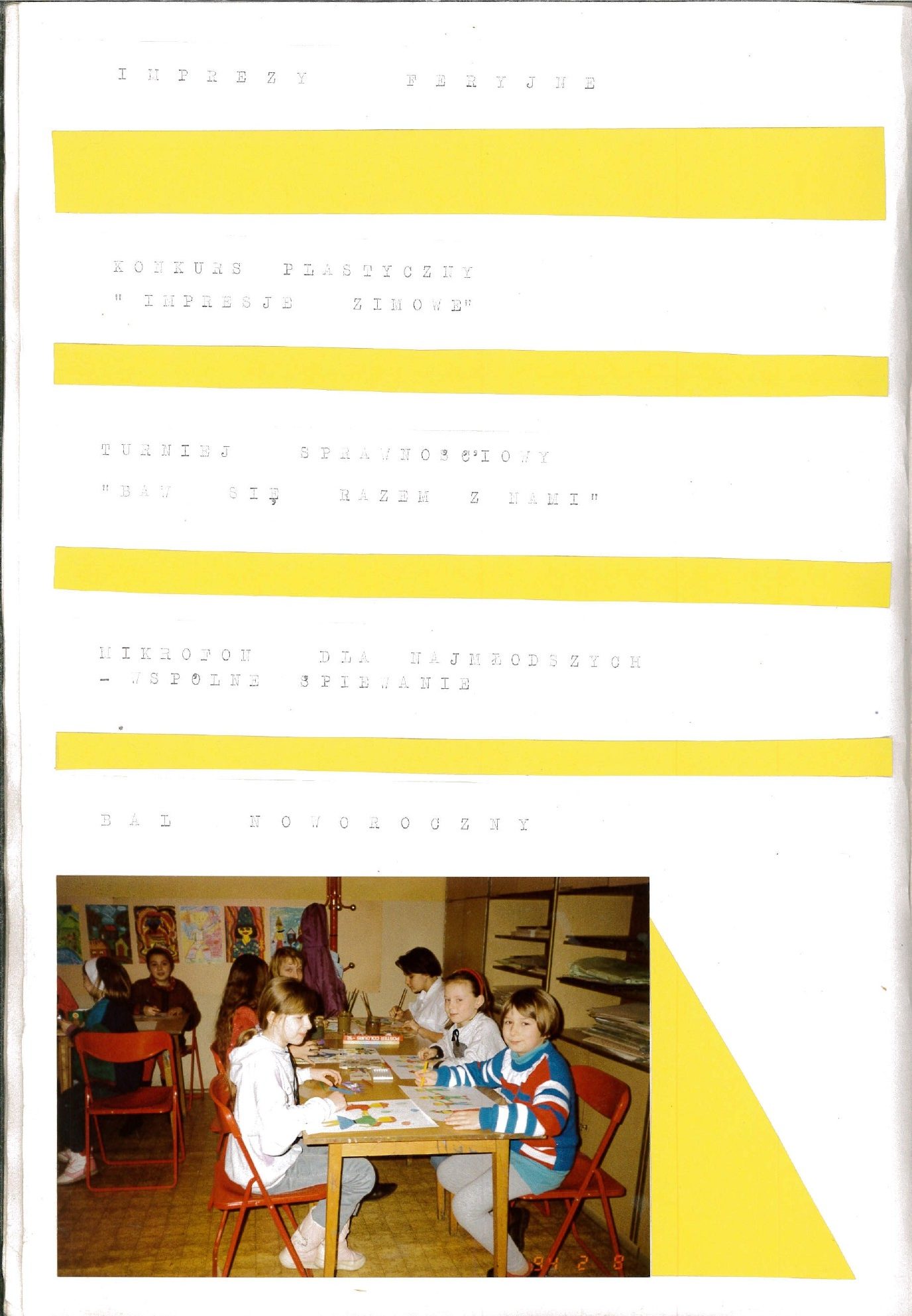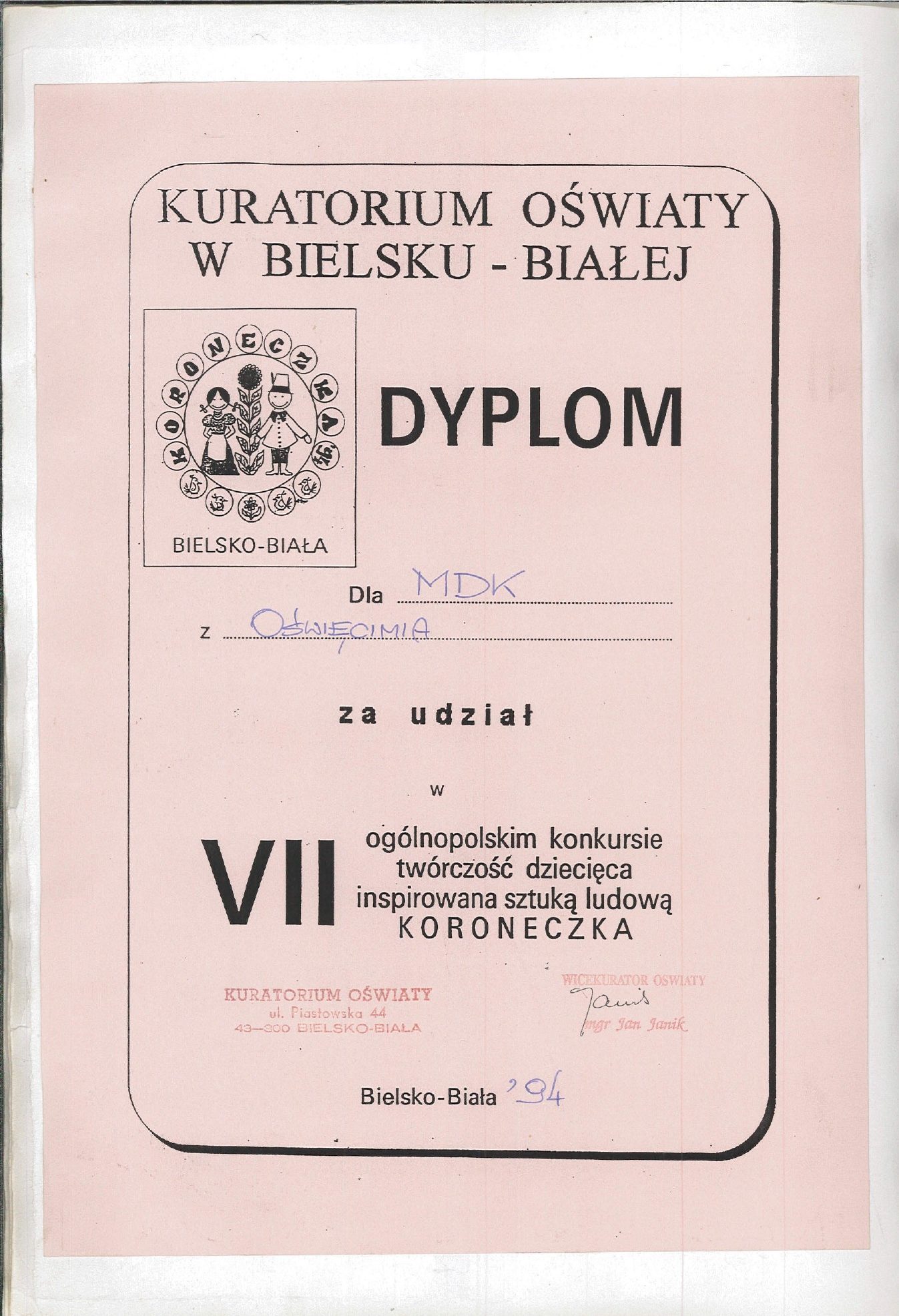 HISTORIA MDK W KRONIKACH ZAKLĘTA – cz. 19 (rok szkolny 1993/1994) 26 czerwca, 2025 Category: Aktualności, Historia MDK Możliwość komentowania HISTORIA MDK W KRONIKACH ZAKLĘTA – cz. 19 (rok szkolny 1993/1994) została wyłączona Post Views: 166