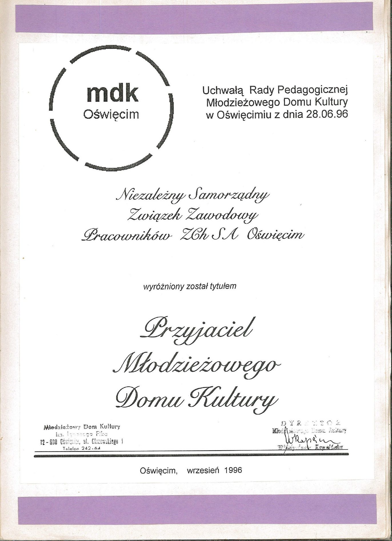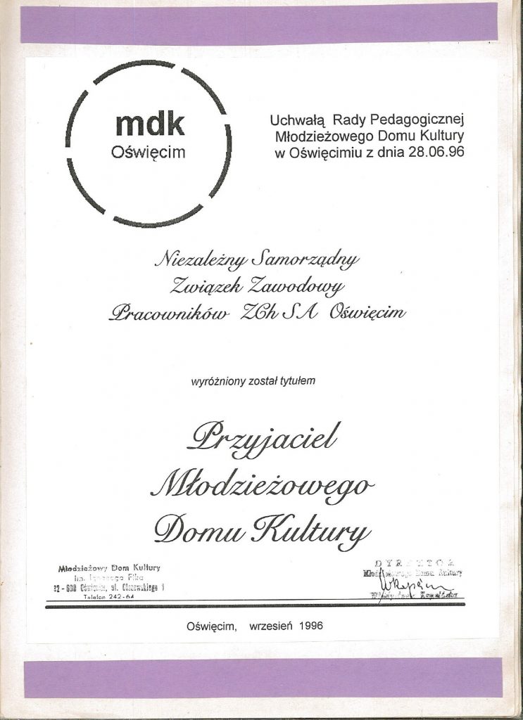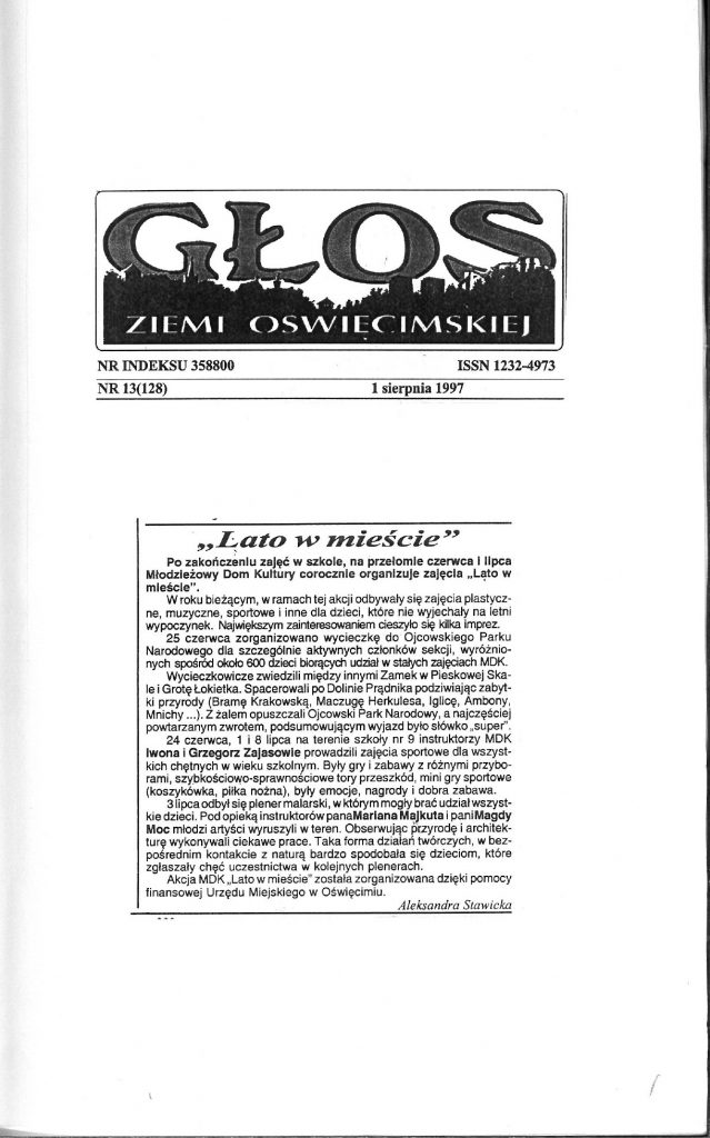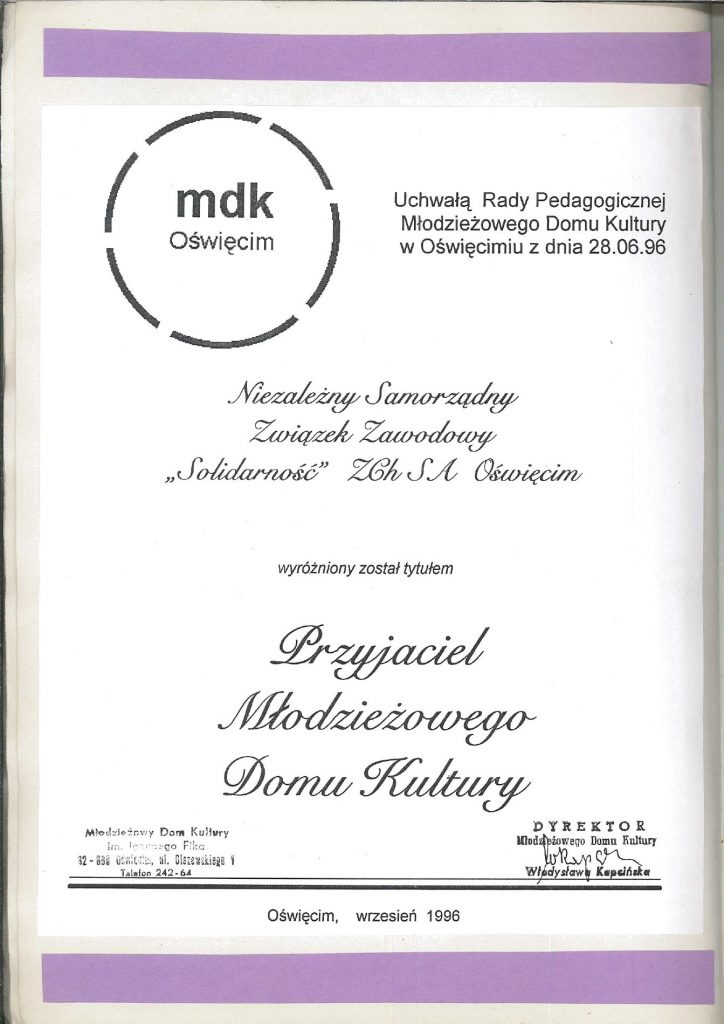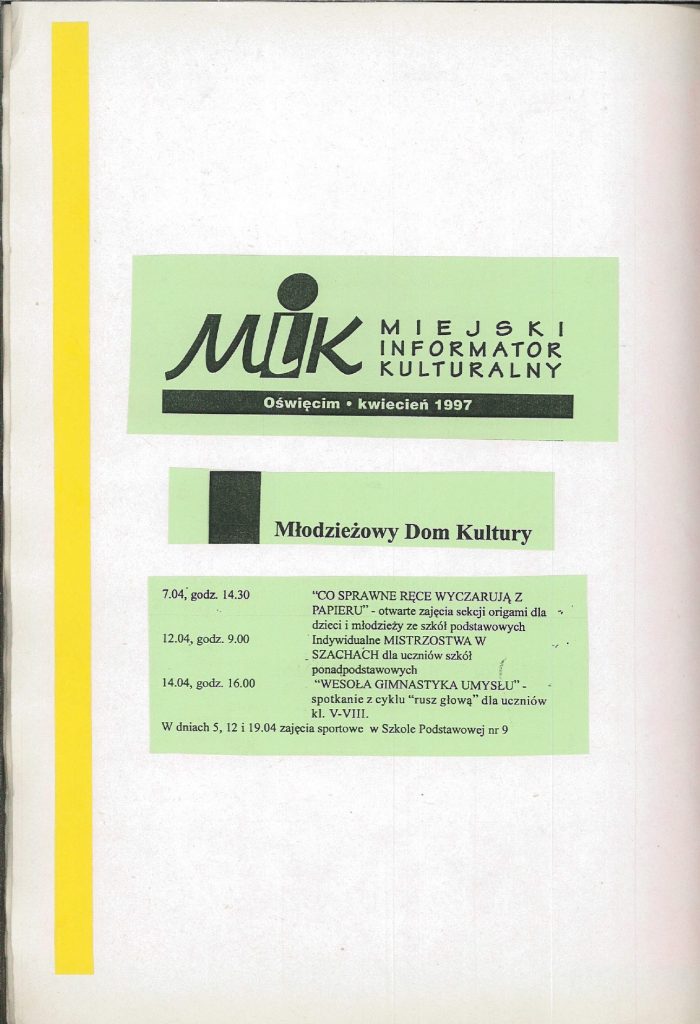HISTORIA MDK W KRONIKACH ZAKLĘTA – cz. 22 (1996/1997) 1 lipca, 2025 Category: Aktualności, Historia MDK Możliwość komentowania HISTORIA MDK W KRONIKACH ZAKLĘTA – cz. 22 (1996/1997) została wyłączona Post Views: 179