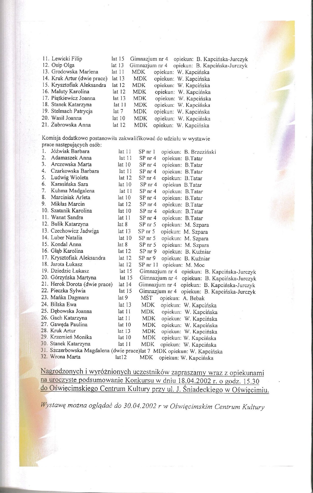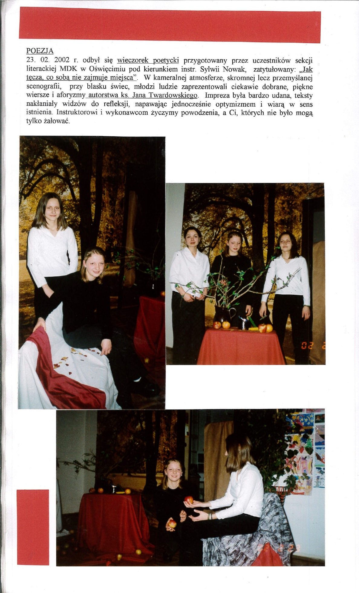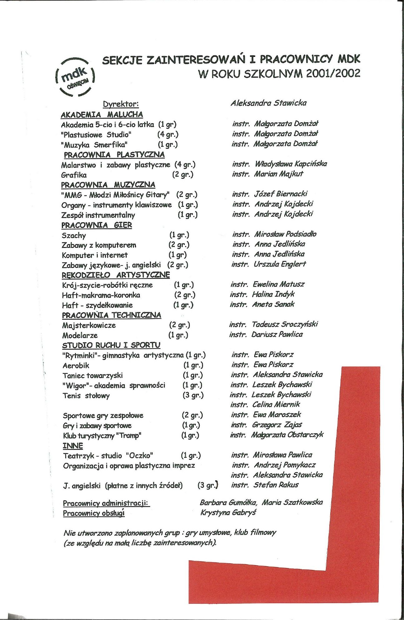 HISTORIA MDK W KRONIKACH ZAKLĘTA – cz. 27 (rok szkolny 2001/2002) 8 lipca, 2025 Category: Aktualności, Historia MDK Możliwość komentowania HISTORIA MDK W KRONIKACH ZAKLĘTA – cz. 27 (rok szkolny 2001/2002) została wyłączona Post Views: 113