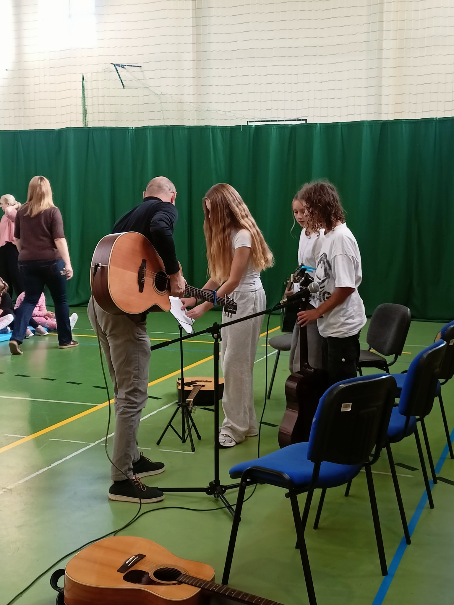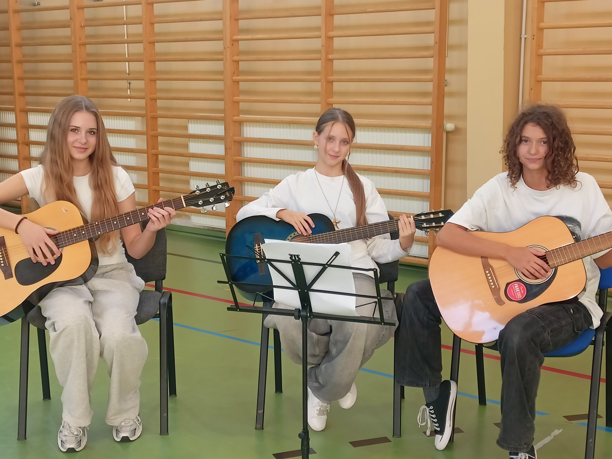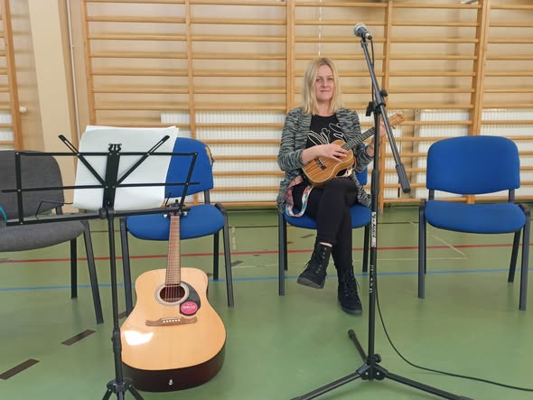 Nasi nauczyciele gry na instrumentach i śpiewu p. Kamila Sibik i p. Janusz Majcherek poprowadzili dziś audycję muzyczną dla wychowanków SZS nr 1 im. A. Mickiewicza w Chełmku. Nauczycielom towarzyszył zespół “Krzywe choinki” czyli podopieczne p. Kamili. Oprócz krótkiego recitalu, na który składały się piosenki popularnych wykonawców m.in. Sanah czy Lanberry, uczniowie mieli okazję posłuchać o tym, czym dla p. Kamili i p. Janusza jest muzyka i zawód który wykonują, a także o propozycjach zajęć w MDK. Był również czas na zadawanie pytań. Nasi muzycy zostali przyjęci z wielkim entuzjazmem i nagrodzeni ogromnymi brawami. Dziękujemy za zaproszenie.