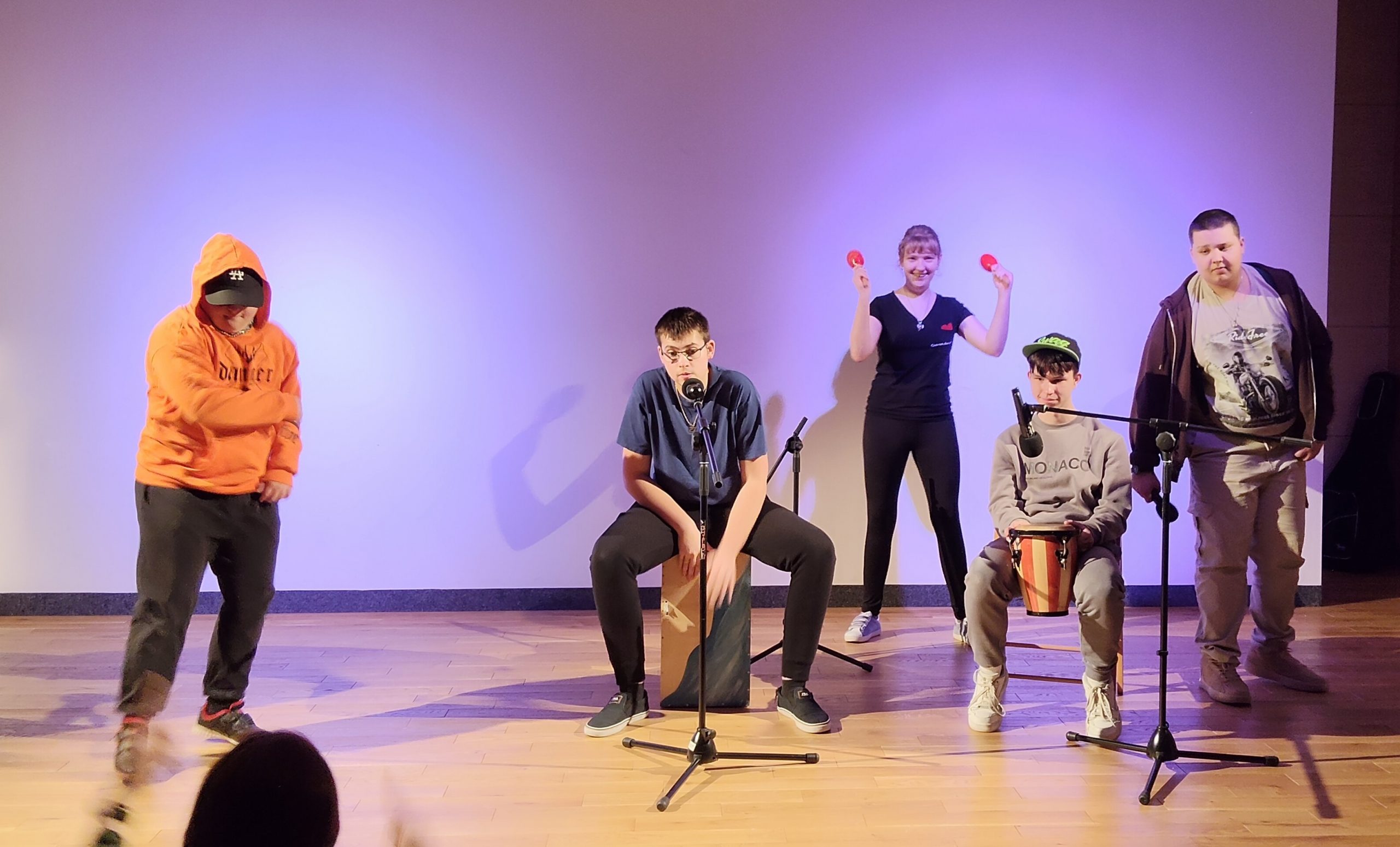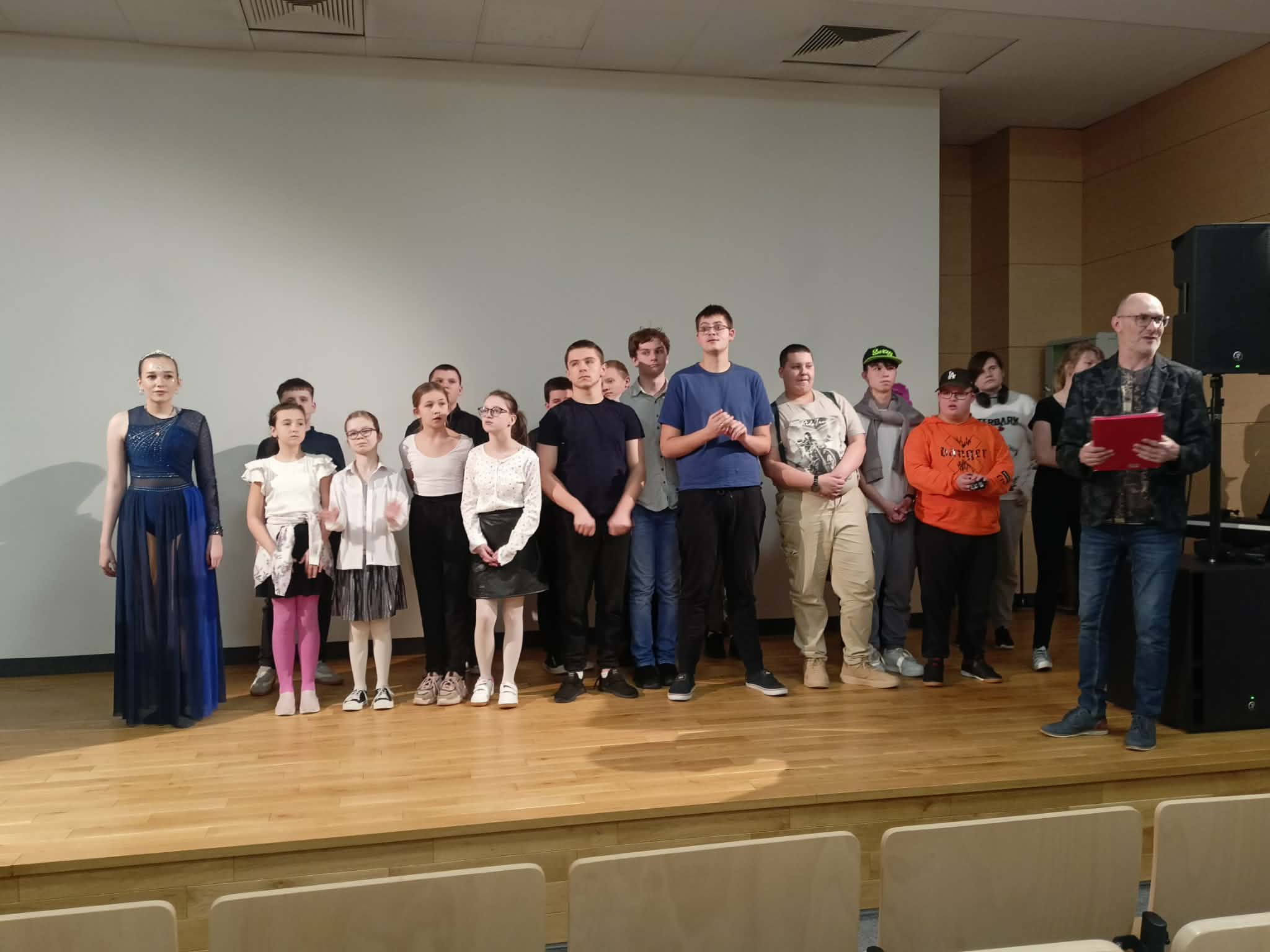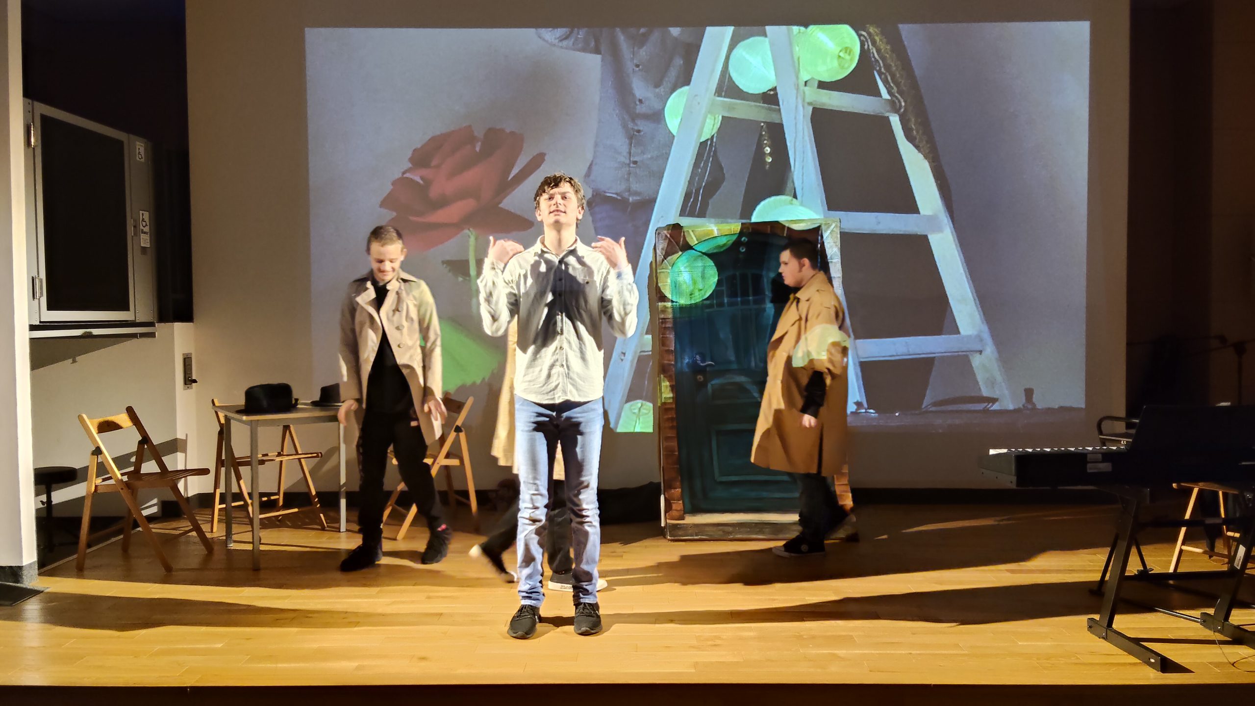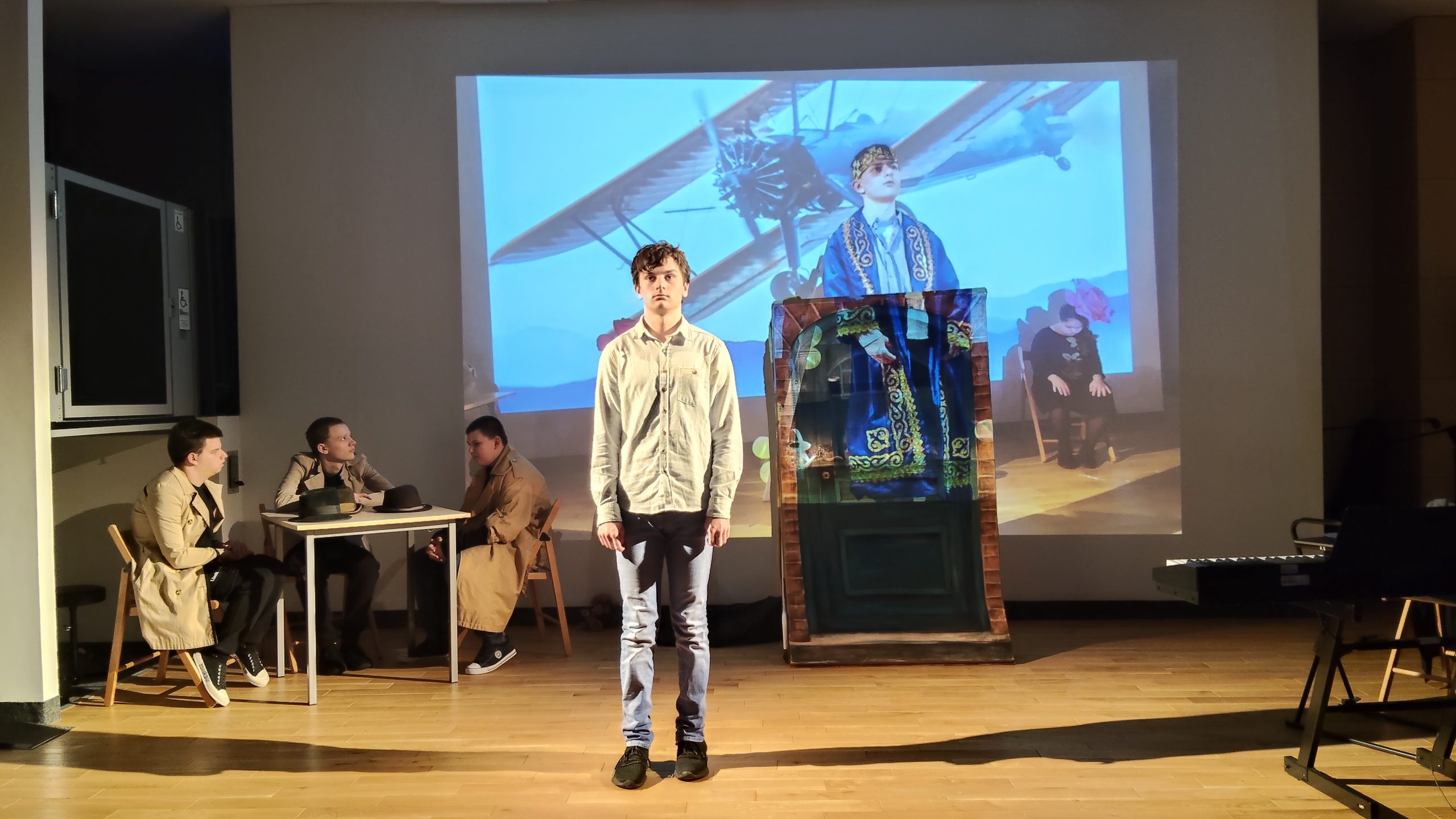 Grupa teatralna (Jakub Stachura, Paweł Szymański, Mateusz Lach, Dawid Łazarz, Miłosz Sadorowicz, Julita Piwowar, Denys Bezzubov)